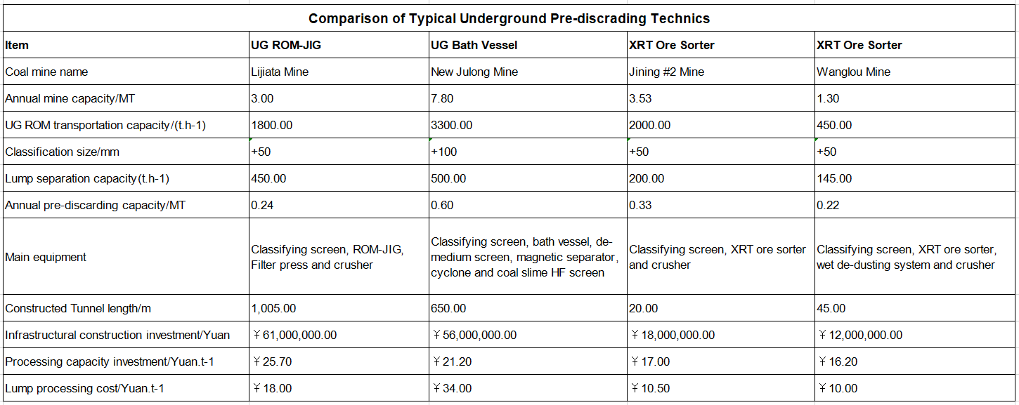 Underground ROM-JIG or bath vessel is usually arranged at coal stockpile, the discarded gangue needs to be transported long distance to working face for re-filling. It costs a lot for transportation. Underground XRT intelligent ore sorter can be arranged at mining section, the short gangue transportation distance reduces much cost.