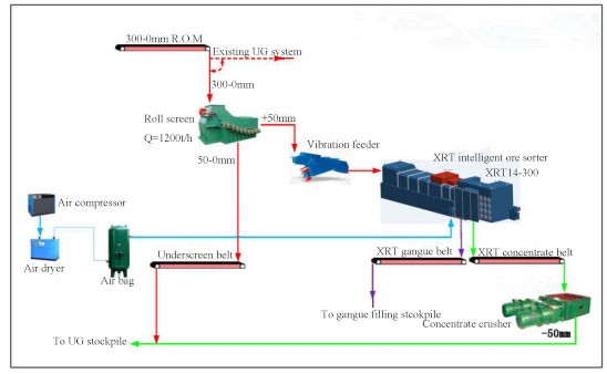 Underground XRT Intelligent Ore Sorter Gangue Pre-discarding Equipment Flowsheet
