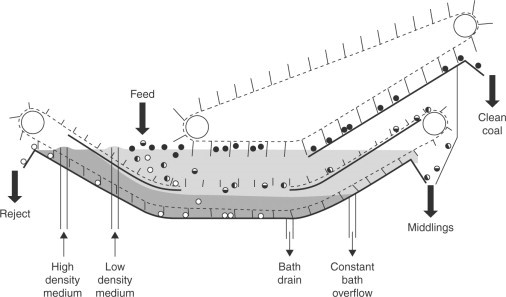 The DSM Bath sorts coal in the gravity field based on the principle of Archimedes' law. The material that is below the medium’s density will float above and pass the overflow as clean coal product under the action of horizontal flow; the material that is higher than the density of medium is gangue, which will sink to the bottom of the bath, and will be scraped out by the chain scraper with low operating speed. In order to effectively sort the materials, the dense medium suspension in the machine must be kept stable and evenly distributed.