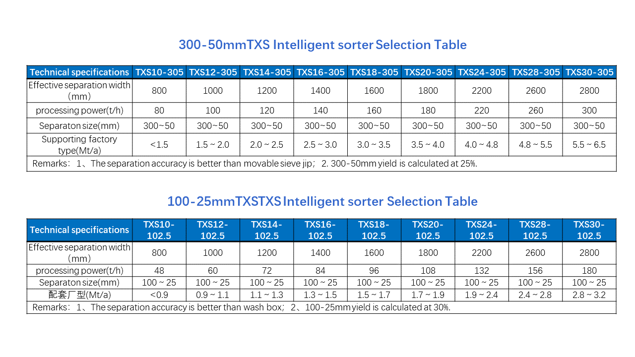 Below is the technical table of TXS Intelligent Sorter of HOT Mining Tech. Figure 3.